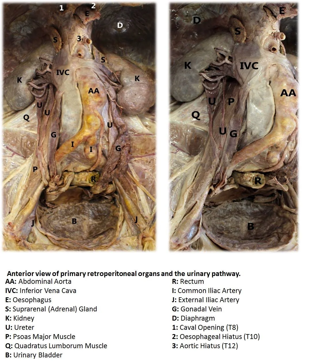 In my approach to this dissection, I began by identifying and marking the surface anatomy prior to making an incision. Once I had verified that the markings were correct, I incised the anterior abdominal wall, revealing the contents of the abdominal cavity. After examining the complex structure of the peritoneum and the mesentery, the peritoneal viscera were carefully removed. Following this step, the structures of the retroperitoneum were exposed. Using the camera provided, I took photographs at every stage of my dissection. This enabled me to document my progress and ensure that I had a record of all of the structures I encountered This photographic record proved useful for my poster and oral presentation.